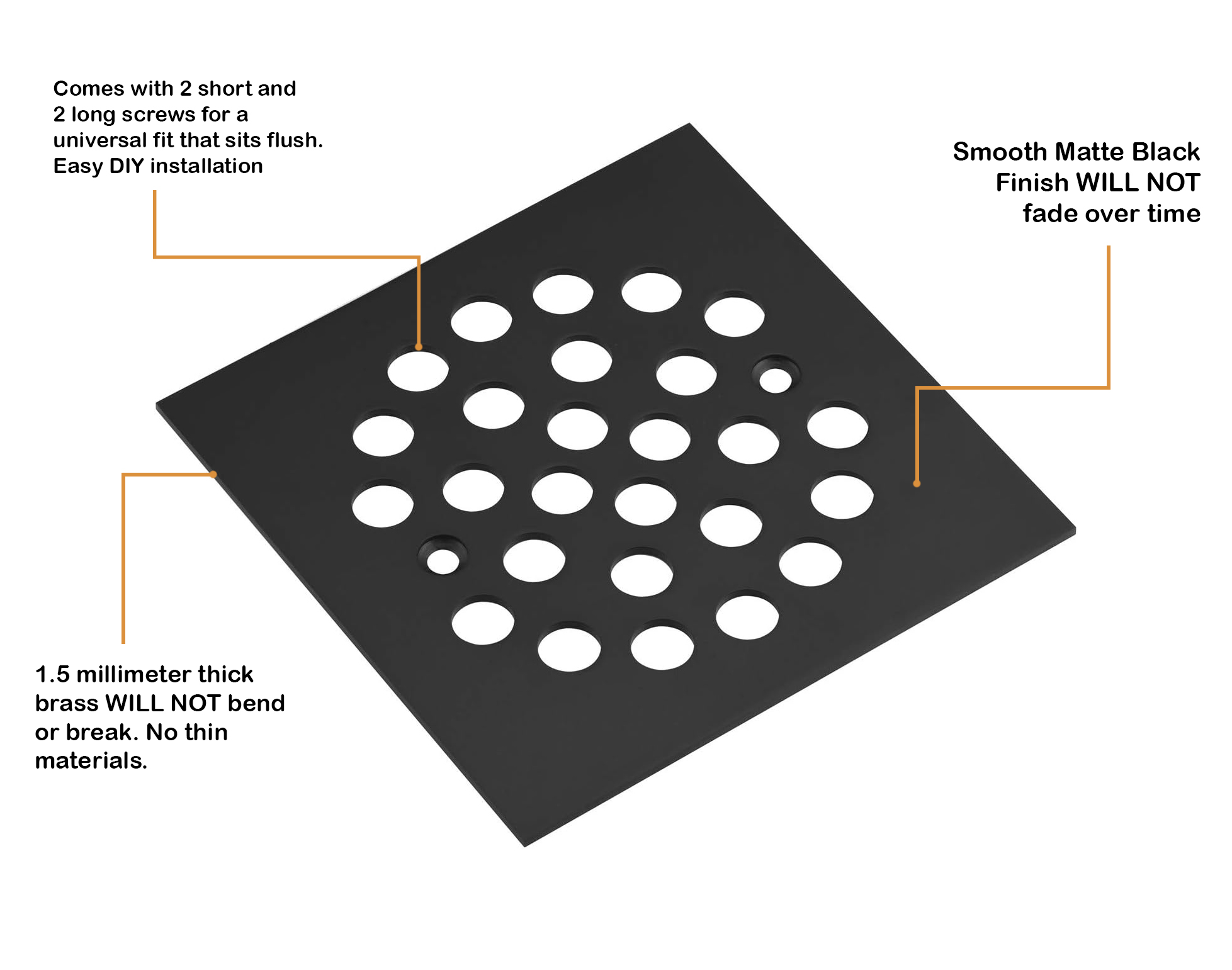 DESIGNED TO LAST – Our Screw-In Grate is high quality 100% Brass. Other grates use cheaper metal that chip over time/bend under pressure. Our classy, Matte Black Finish is double-coated and will not fade over time.